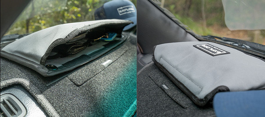 You don’t have to worry about anything in your dash organizer falling out, our heavy duty velcro strip will handle it!