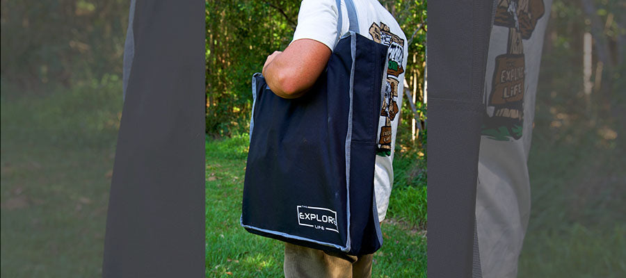 All of our camp chairs come with a carry bag which includes our heavy duty shoulder straps, saving all the sand and dirt from going into your car!